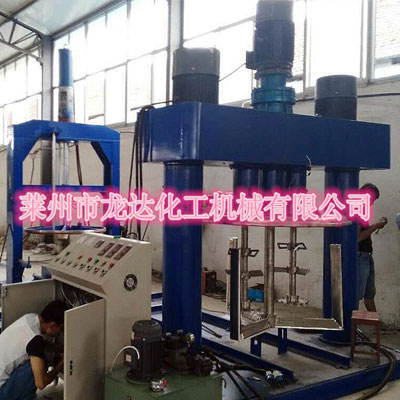 由攪拌桶、攪拌蓋、攪拌動力頭(含兩組低速攪拌槳、兩組高速分散器及一組刮壁槳)、溫控裝置、升降裝置、鎖桶裝置及控制系統(tǒng)等組成。